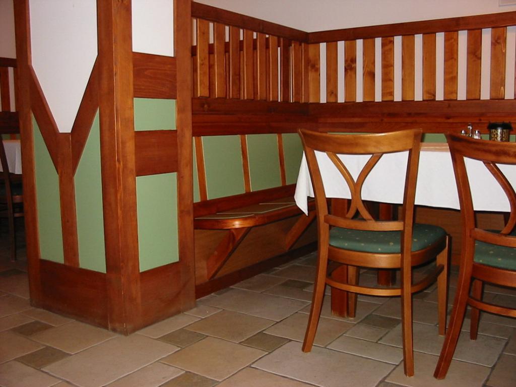 A szállodává átalakított volt üdülő, alagsorába kapott helyet az étterem. A meglévő tér átalakításánál elsődleges szempont volt, hogy a homlokzaton, és a belső térben lévő építészeti elemek az étteremben is megjelenjenek. A fél álmennyezet a torony faburkolatát, a falpillérek burkolata az ajtók osztását idézik.