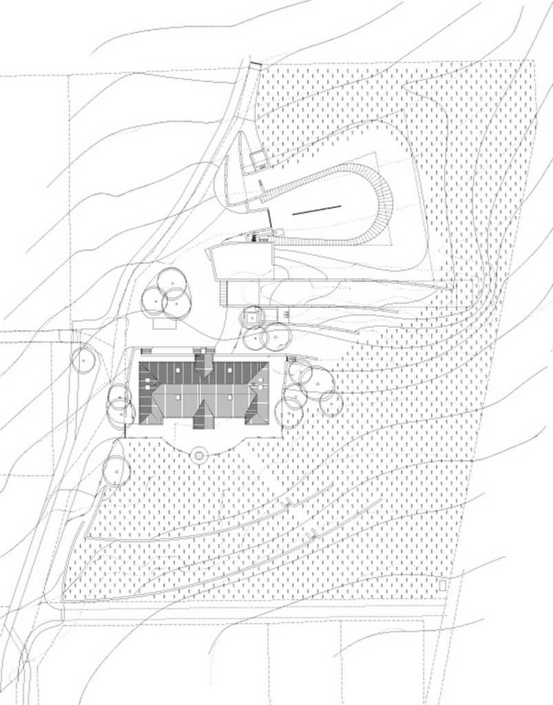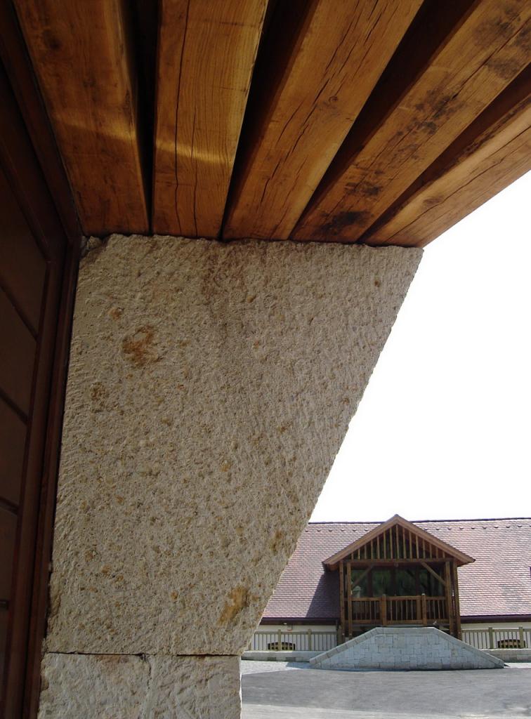 Az épületek építészeti megfogalmazásánál megpróbáltunk a tulajdonosok elképzelései szerinti atmoszférát és alaprajzi elrendezést megtervezni, amely szerencsésen összecsengett a mi felfogásunkkal is. A régi borház teljes rekonstrukciójával és egy szélesebb veranda hozzáadásával egy olyan főépületet hoztunk létre, mely helyet ad a vendégfogadásnak, az irodáknak, valamint a hagyományos hordós must erjesztés helyiségének. A helyreállításnál egy puritán, de nemes karaktert kívántunk visszaállítani, amely víziónk szerint az egykori borház archetípust ötvözi a mai ?céglogo-kúria? megjelenéssel.