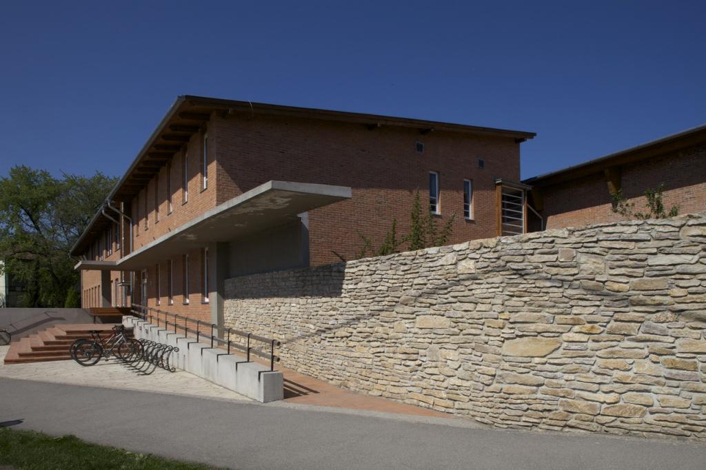 A ház két fő tömegből tevődik össze. Az egyik rész a tanuszoda, a másik épületrész pedig egy meglévő épület helyére (annak elbontásával) épült és különféle funkciókkal bír (uszodai öltözők, előcsarnok, snack bár, tantermek, nevelési tanácsadó, stb.).