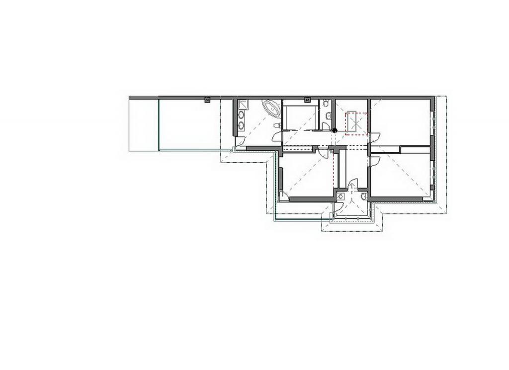 Az épület egy meglévő, jellegtelen, sátortetős ikerház átépítése.
